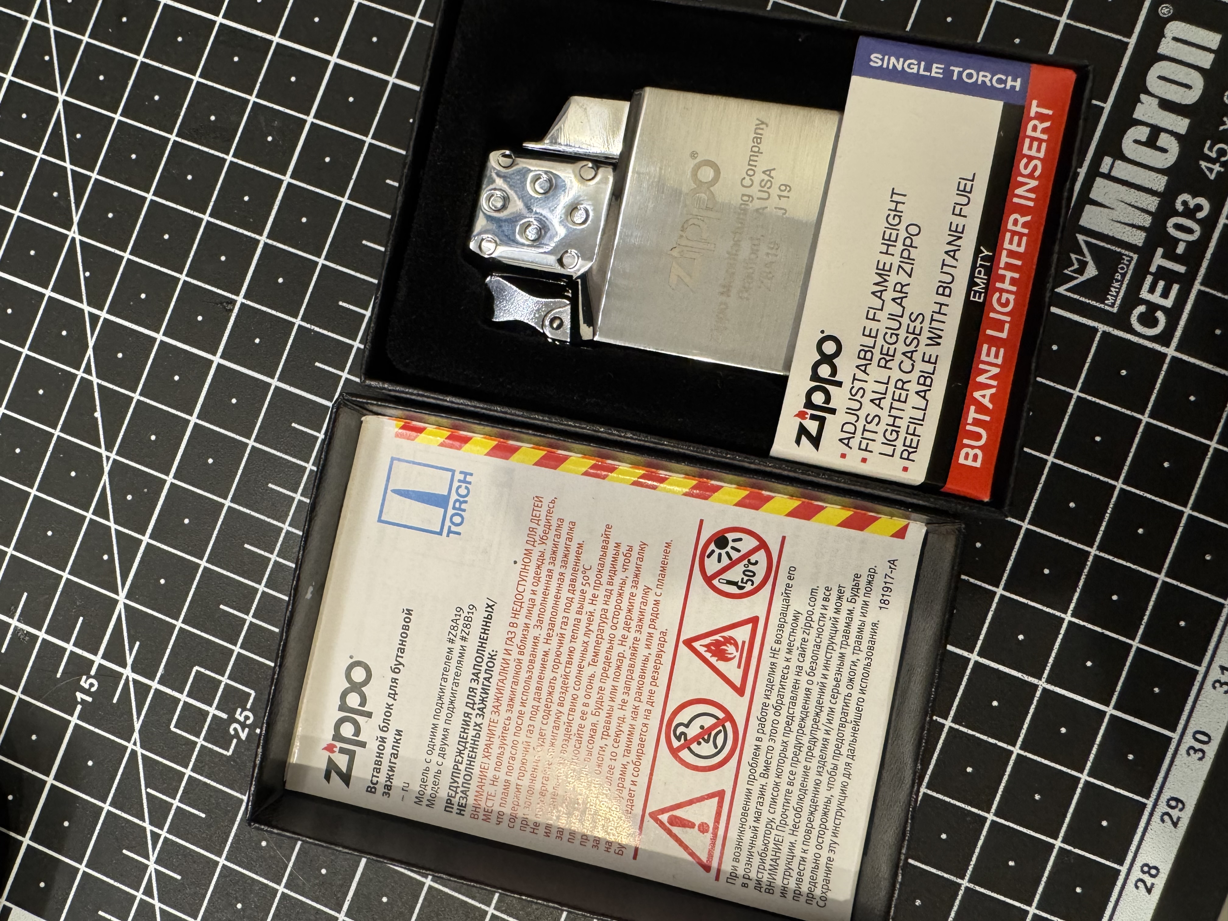 Примечание: этот вставной блок поставляется без топлива. Заполнять бутановым топливом Zippo. Вставные блоки продаются отдельно без корпуса зажигалки. Покупайте корпус зажигалки с учетом своих индивидуальных предпочтений и чувства стиля.